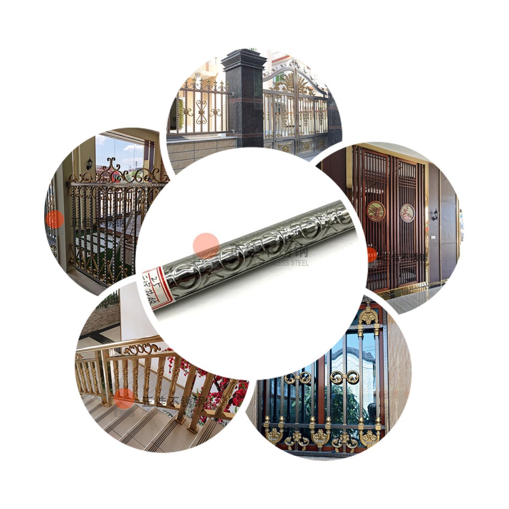 本款產品是一種新型的藝術不銹鋼,在不銹鋼管的表面壓出漂亮復雜的花紋,可以定制各種個性花紋。廣泛應用于各種建筑裝飾,讓您的家居裝飾盡顯藝術氣息!